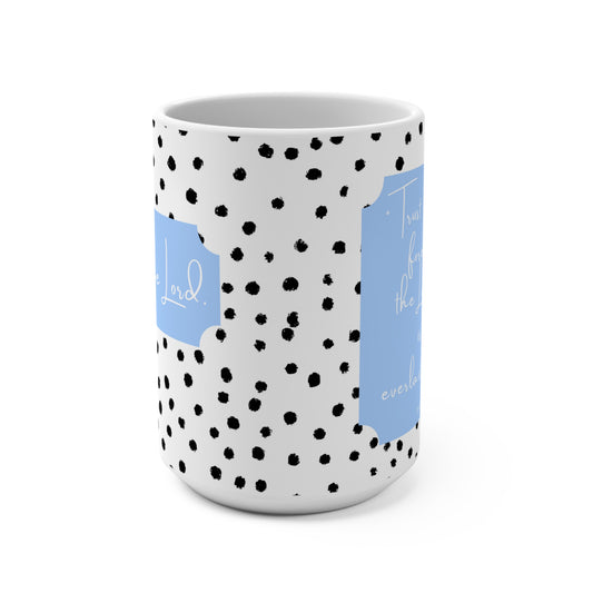 Trust in the Lord - Isaiah 26 Christian Coffee Tea Mugs - Cute Gifts for Christian Women Moms - Stocking Stuffers 15oz Mug Polka Dot and Blue
