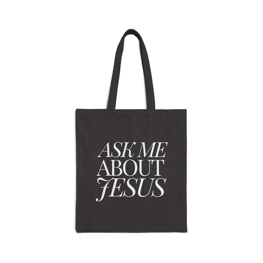 Ask Me About Jesus - Black Tote Bag Christian Gifts - Evangelism Gifts
