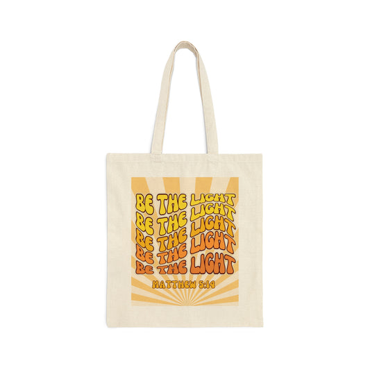 Be the Light - Christian Gifts for Women and Girls - Hippy Retro Christian Cotton Canvas Tote Bag - Matthew 5:14