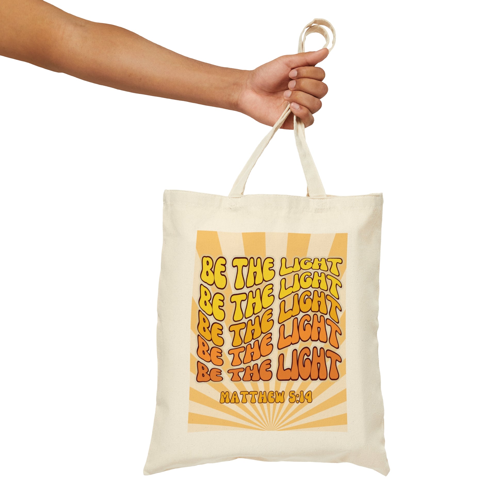 Embrace your faith and radiate positivity with our "Be the Light" Christian tote bag! This beautiful, retro-inspired, cotton canvas tote is a reminder of the incredible message from Matthew 5:14.